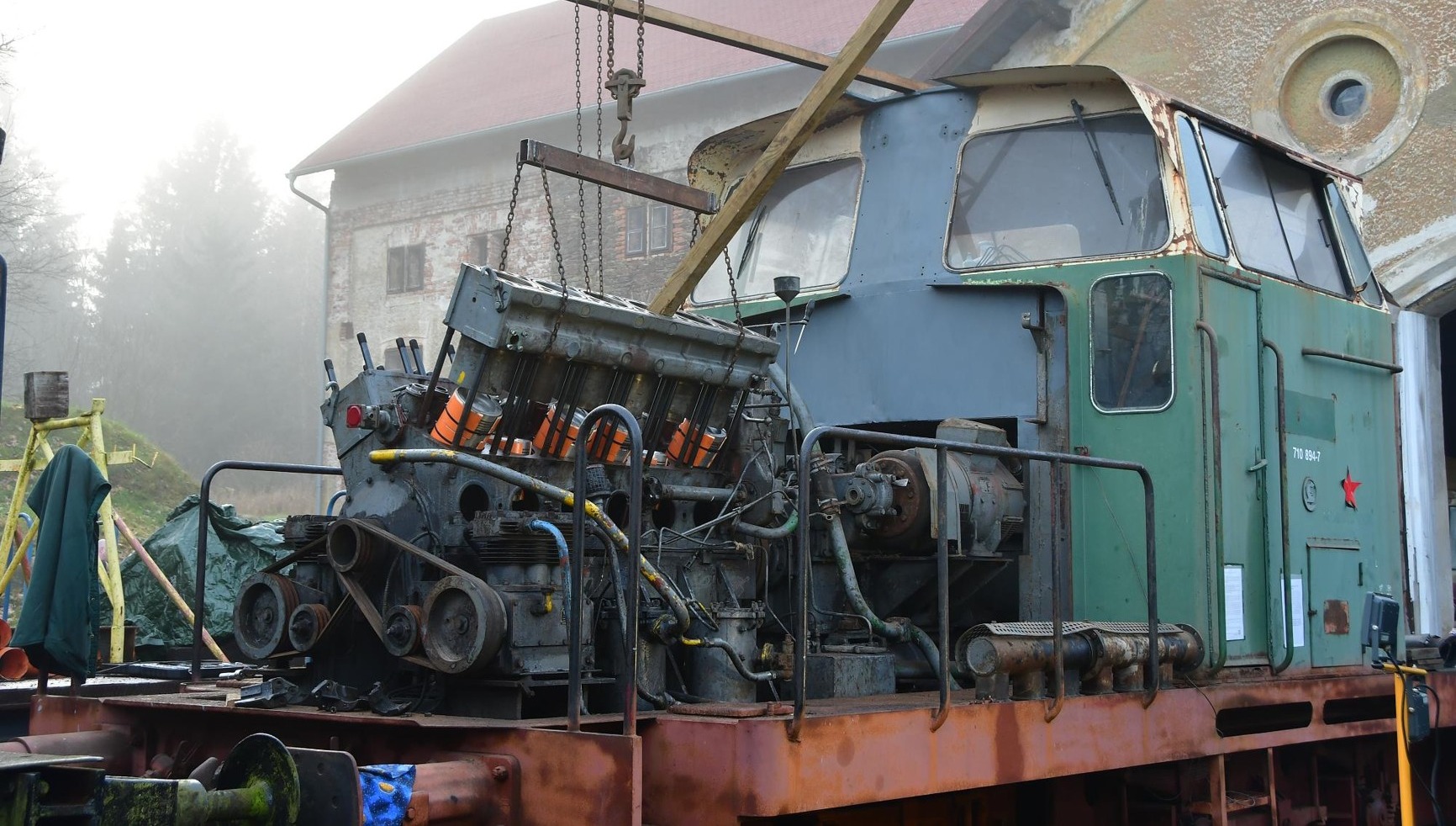 Der Laubfrosch steht etwas im Hintergrund, da Singrovka für uns Priorität hat. Aber auch an der grünen Lok haben wir bei der Generalüberholung ihres Motors einiges geleistet. Im Frühjahr haben wir Laufbuchsen in die Zylinderblöcke eingepresst, aber bei der Druckprüfung zeigte sich ein Riss in einem der Blöcke. Wir haben lange Ratschläge und Tipps gesammelt, bis wir uns im Herbst endlich entschlossen haben, den Riss mit Metallkleber zu kitten.